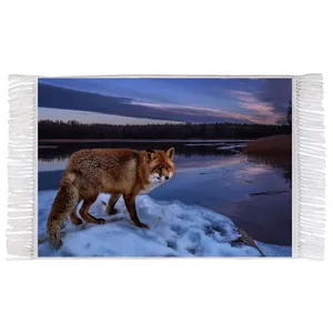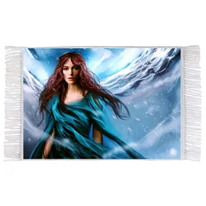 فرش ماشینی دیوارکوب اطلس آبی طرح نقاشی منظره رودخانه جنگل درخت مدل T1101