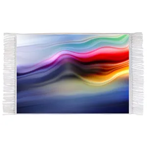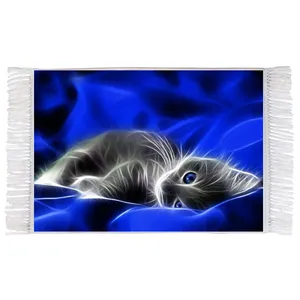 فرش ماشینی دیوارکوب اطلس آبی طرح انتزاعی مدل T1156