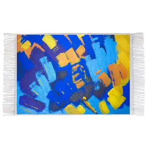 فرش ماشینی دیوارکوب اطلس آبی طرح عشق مدل T1298
