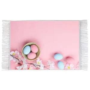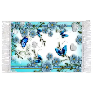 فرش ماشینی دیوارکوب اطلس آبی طرح شکوفه های بهاری درخت هلو مدل T1311
