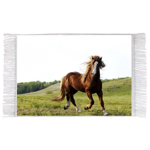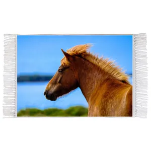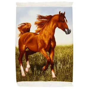 فرش ماشینی دیوارکوب اطلس آبی طرح اسب مدل T1337