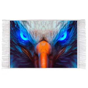 فرش ماشینی دیوارکوب اطلس آبی طرح جمجمه و اسکلت مدل T1339
