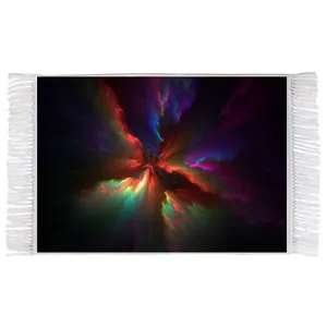 فرش ماشینی دیوارکوب اطلس آبی طرح انتزاعی پرتره دختر مدل T1344