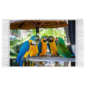 فرش ماشینی دیوارکوب اطلس آبی طرح درخت و پرنده مدل T1367