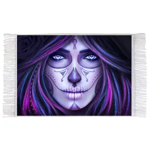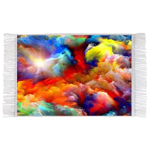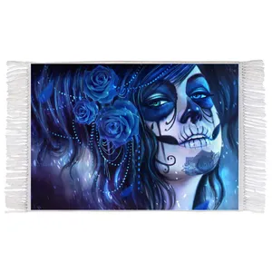 فرش ماشینی دیوارکوب اطلس آبی طرح جنگل جادویی و درخت و دختر و پسر و عشق مدل T1393