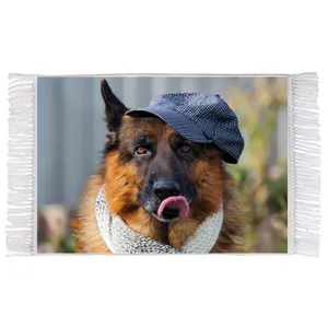 فرش ماشینی دیوارکوب اطلس آبی طرح سگ پیت بول مدل T1484