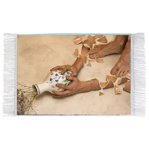 فرش ماشینی دیوارکوب اطلس آبی طرح تمساح و سوسمار و مرداب مدل T1520