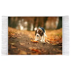 فرش ماشینی دیوارکوب اطلس آبی طرح زن جوان و سگ و طبیعت مدل T1529