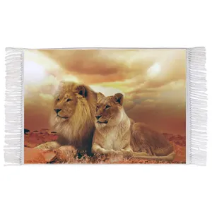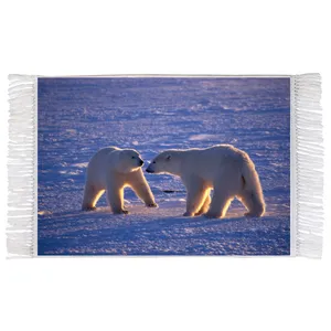 فرش ماشینی دیوارکوب اطلس آبی طرح خرس پاندا و برگ درخت مدل T1531