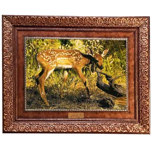 فرش ماشینی دیوارکوب اطلس آبی طرح گوزن مدل T1541