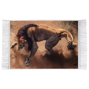 فرش ماشینی دیوارکوب اطلس آبی طرح گوزن و جنگل مدل T1542