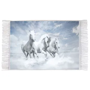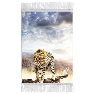 فرش ماشینی دیوارکوب اطلس آبی طرح گوزن و جنگل مدل T1546