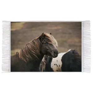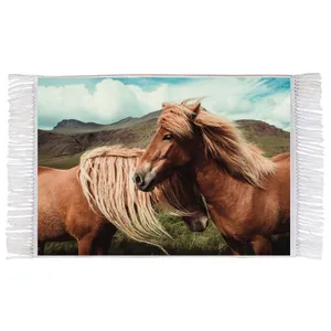 فرش ماشینی دیوارکوب اطلس آبی طرح اسب و غروب آفتاب مدل T1576