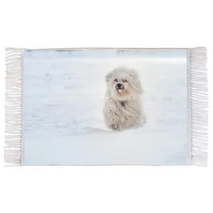 فرش ماشینی دیوارکوب اطلس آبی طرح سگ مدل T1585