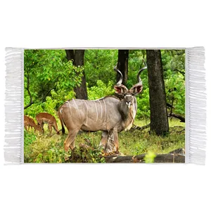 فرش ماشینی دیوارکوب اطلس آبی طرح زرافه مدل T1589