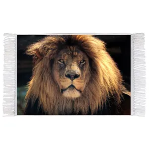 فرش ماشینی دیوارکوب اطلس آبی طرح شیر ماده مدل T1617