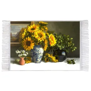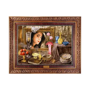 فرش ماشینی دیوارکوب اطلس آبی طرح سفره هفت سین عید نوروز مدل T1646