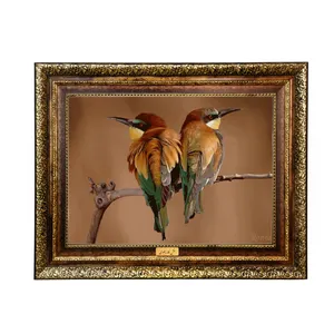 فرش ماشینی دیوارکوب اطلس آبی طرح پرنده و گنجشک روی شاخه درخت مدل T1665