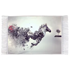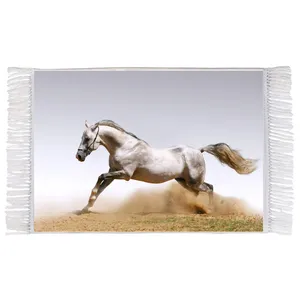 فرش ماشینی دیوارکوب اطلس آبی طرح اسب و دریا مدل T1683