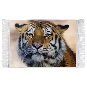 فرش ماشینی دیوارکوب اطلس آبی طرح شیر نر مدل T1720