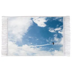 فرش ماشینی دیوارکوب اطلس آبی طرح طبیعت و پل گلدن گیت مدل T1759