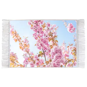 فرش ماشینی دیوارکوب اطلس آبی طرح شکوفه بهار مدل T1773