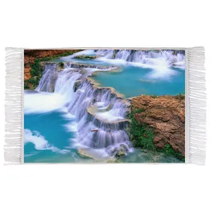 فرش ماشینی دیوارکوب اطلس آبی طرح منظره کوه و دره و رودخانه مدل T1817