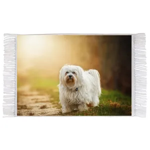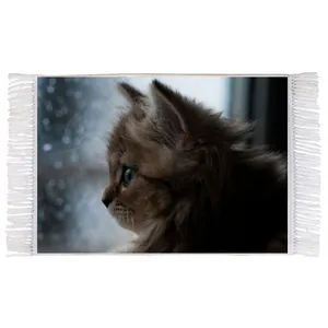 فرش ماشینی دیوارکوب اطلس آبی طرح منظره چمن و آفتاب مدل T1824