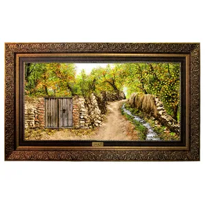 فرش ماشینی دیوارکوب اطلس آبی طرح حفاظ مزرعه صحرایی مدل T1827
