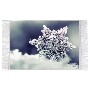 فرش ماشینی دیوارکوب اطلس آبی طرح منظره زمستان و درخت و برف مدل T1882