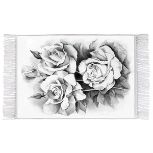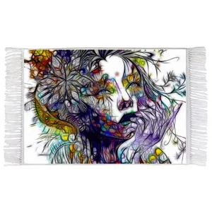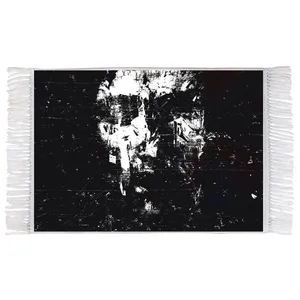 فرش ماشینی دیوارکوب اطلس آبی طرح منظره زمستان و برف و درخت مدل T1911