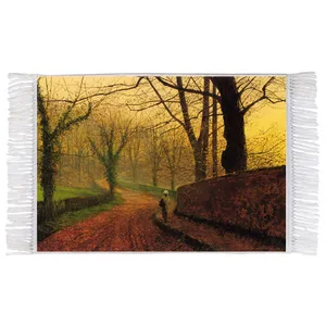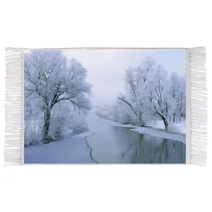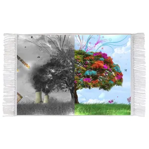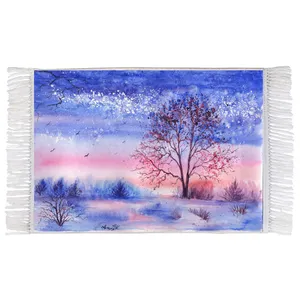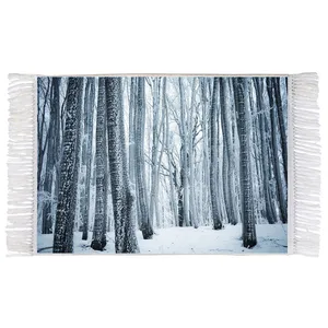 فرش ماشینی دیوارکوب اطلس آبی طرح جنگل و درخت مدل T1938