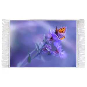 فرش ماشینی دیوارکوب اطلس آبی طرح گل مدل T1945