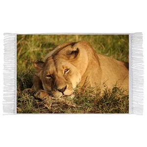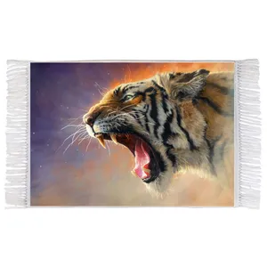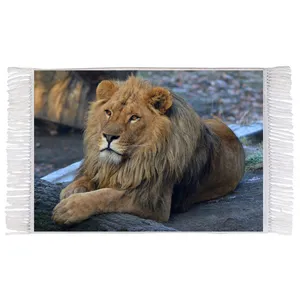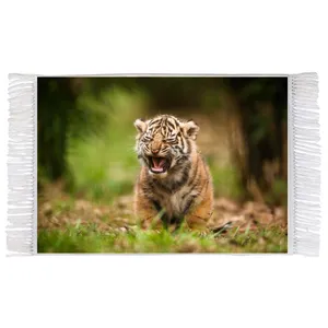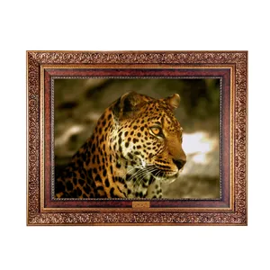 فرش ماشینی دیوارکوب اطلس آبی طرح طبیعت و پلنگ مدل T1967