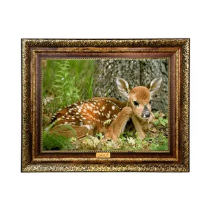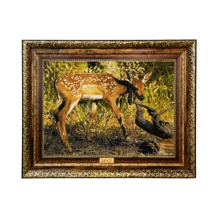 فرش ماشینی دیوارکوب اطلس آبی طرح جنگل و آهو مدل T1968