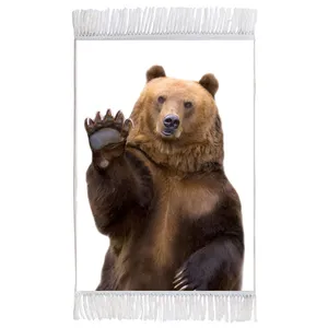 فرش ماشینی دیوارکوب اطلس آبی طرح دریاچه و فیل مدل T2004