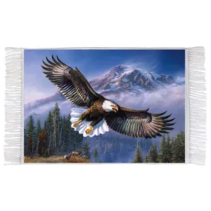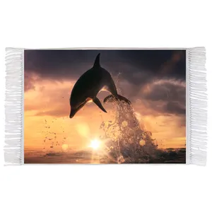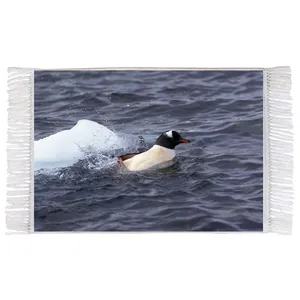 فرش ماشینی دیوارکوب اطلس آبی طرح دریا و پنگوئن مدل T2050