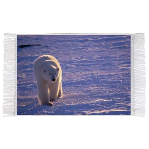 فرش ماشینی دیوارکوب اطلس آبی طرح برف و فک و شیر دریایی مدل T2108