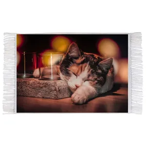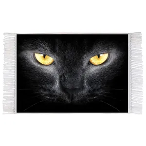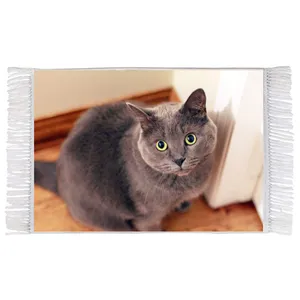 فرش ماشینی دیوارکوب اطلس آبی طرح گربه مدل T2134