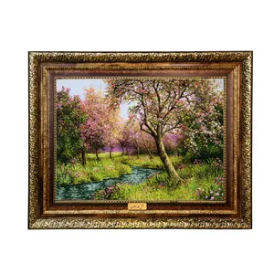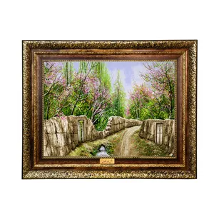 تابلو فرش دستباف فرش میرنظامی مدل منظره کوچه باغ و شکوفه بهاری کد 788