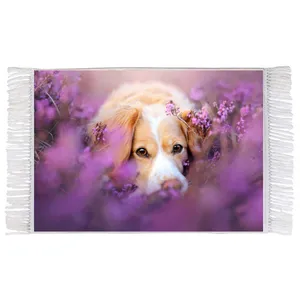 فرش ماشینی دیوارکوب اطلس آبی طرح سگ مدل T2238