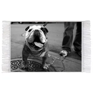 فرش ماشینی دیوارکوب اطلس آبی طرح سگ و پیراهن و کت مدل T2250