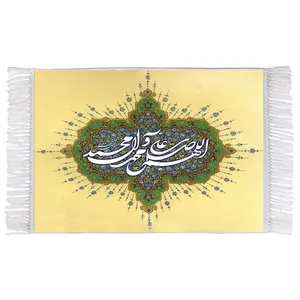 فرش ماشینی دیوارکوب اطلس آبی طرح بنفسی انت اهلی و مالی یا حسین مدل T2316
