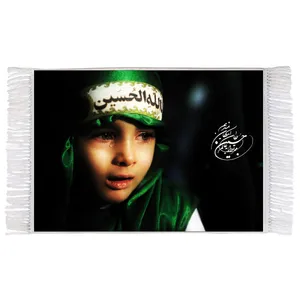 فرش ماشینی دیوارکوب اطلس آبی طرح کربلا و امام حسین مدل T2528