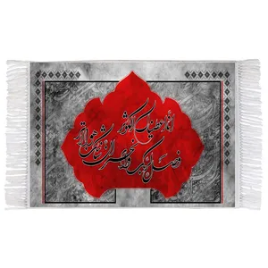 فرش ماشینی دیوارکوب اطلس آبی طرح سماوری که به بزم حسین می جوشد بخر رحمت آن جرم خلق می پوشد مدل T2620