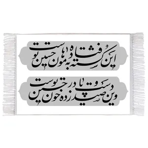فرش ماشینی دیوارکوب اطلس آبی طرح حافظ تو دم ز باده شیرازی میزنی من دم زچای روضه ارباب می زنم مدل T2625