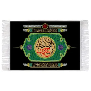 فرش ماشینی دیوارکوب اطلس آبی طرح حب الله من احب حسینا مدل T2652