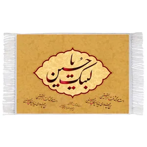 فرش ماشینی دیوارکوب اطلس آبی طرح لبیک یا حسین مدل T2806