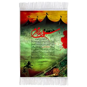 فرش ماشینی دیوارکوب اطلس آبی طرح لبیک یا حسین مدل T2821