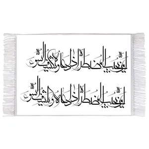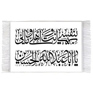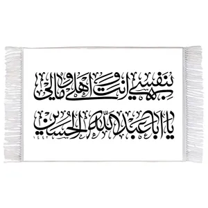 فرش ماشینی دیوارکوب اطلس آبی طرح به یاد چایی شیرین کربلایی‌ها لبم حلاوت اهلا من العسل دارد مدل T2998